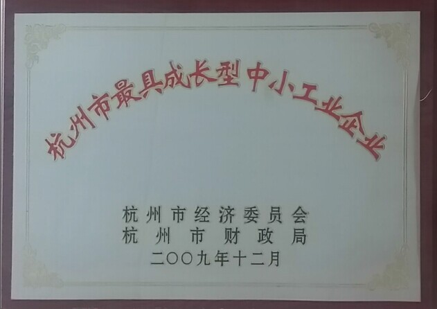 2009年杭州市最具成長(zhǎng)型中小工業(yè)企業(yè)