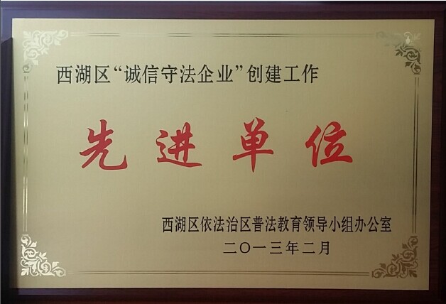 西湖區(qū)誠(chéng)信守法企業(yè)先進(jìn)單位